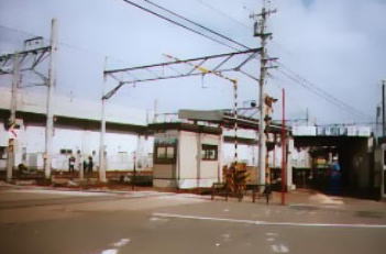 | 福井口駅。勝山方面の越前本線と、三国・芦原方面の三芦線との分岐点です。朝夕は乗り換えの高校生で狭いホームが混み合います。1両編成の電車は利用者にとっては不便ですね。車両基地がそばにあって、たくさんの電車を見ることができます。 | 新福井駅横の観音町踏切にて。正式には宝永踏切といいます。JRと京福の複々線区間で電車の往来がたくさんあります。幼少の頃は電車を見に父に連れられてよくここまで来ました。子供にとっては踏切は楽しいのですが、通行人にとっては「開かずの踏切」です。2分30秒ごとに電車が通るという統計まであります。 | 新福井は京福福井駅の次の駅です。かつては立派な駅舎があってホームには金魚の泳ぐ池もありました。のどかな時代もあったのですが、現在はなんとも無味乾燥なたたずまい。 | 自家用車のなかった我が家では海水浴に行くのは京福電車を利用していました。海水浴のシーズンには駅で名物「酒まんじゅう」の販売もありました。あのころと変わらぬ駅舎で、ただ変わったのは利用者が少ないこと。それでもここから先の安島・崎の集落へ、何人かの高校生が帰っていく姿を見かけました。 |