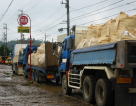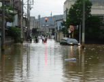 | 7月18日午後5時30分頃 福井市木田1丁目付近。 まだ7,80センチの水位が あります。下水とガソリンの 入り交じった臭いが辺り一面 たちこめています。 |