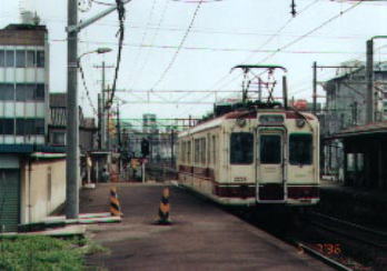 今年7月20日にえちぜん鉄道として第三セクター方式により運転を再開しました。「えち鉄」という人もいます。何だか変です。永平寺口(東古市)−勝山間は設備の点検上運転を再開していませんが、福井−三国港、福井−永平寺口は30分ごとのダイヤで運転されています。軌道の交通手段の定時性改めて見直されたのではないでしょうか。長らく続いていたてバスによる代行輸送も終わりました。京阪や京都バス、名鉄から借りてきたと思われる塗装もそのままの車両も殆ど目にすることがなくなりました。関西や中京方面からきた塗装のバスが走っていて、ちょっとした異国情緒があふれていたフェニックス通り(大名町通り)も今は元の風情に戻りました。塗装のみならず、「石山自動車学校」なんて釣り広告もあったりして、あれはきっと京阪の営業所から来たバスなんでしょう。