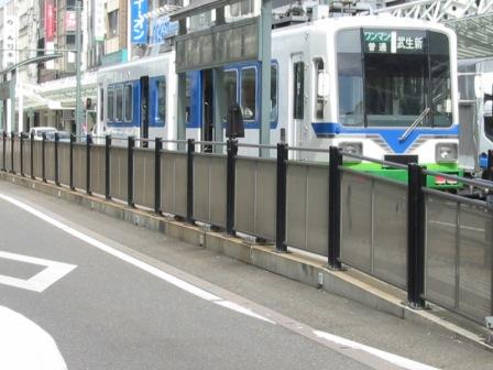 写真左は、福井鉄道の福井駅前停留所。安全地帯に屋根と柵が付けられて何となく始発駅・終着駅の感じがします。当日は、市役所前から福井新(現、赤十字前)を利用しました。