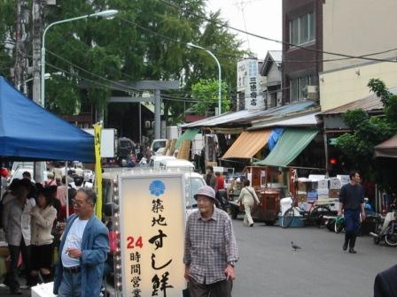 こちらは、中央区築地。卸売市場があって、一般の人が買い物できるところは場外市場となっています。この場外市場が何とも威勢があって、江戸っ子を感じます。規格化されたファッションビルのテナントなんかで買い物するより、こういった雑踏の方が落ち着くのでしょうか。