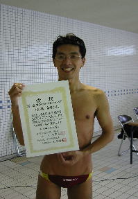 2002年10月27日、毎年恒例の水泳大会。弱音を吐きながらも何とか頑張りました。ワンランク上のコースで練習した成果が出たようで、年甲斐もなく記録が少し伸びました。100M個人メドレーが1分47秒22、50M平泳ぎが44秒90。級別のランクにはとうてい届きませんが、これからも楽しく泳げたらいいなあと思います。